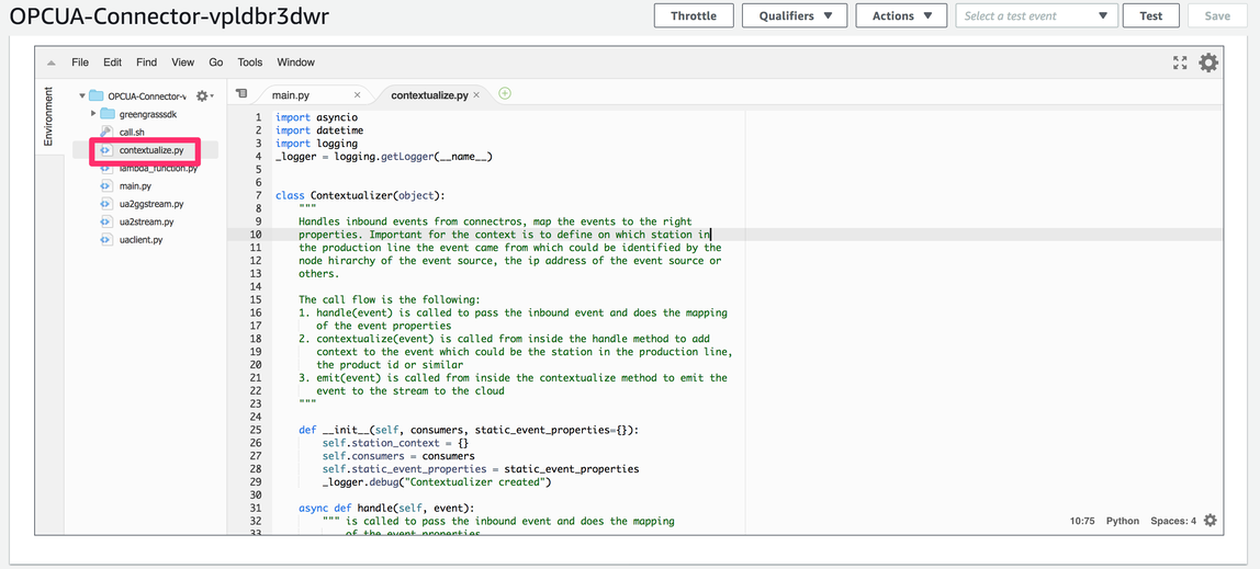 The OPC UA Connector includes a contextualizer - let’s have a look in the code what it’s doing.